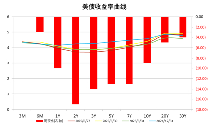4、核心PCE物价指数5月同比上升2.7%,略超市场预期的2.6%。5月实际个人消费支出环比下降0.3%,为年初以来的最大跌幅;个人收入环比降0.4%,出现自2021年以来的最大跌幅。美联储卡什卡利称,仍预计今年美联储将进行两次降息,首次降息可能在9月进行,关税仍是最大变数。