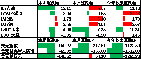 上周美元指数下行150.27BP,鲍威尔提到不排除提前降息,同时特朗普再度施压美联储使得市场担忧美联储独立性受到影响,叠加中东冲突缓解带动避险需求走弱,使得美元出现了较大幅度的下行。在此背景下人民币上周升值65个基点,日元升值146.6个基点。