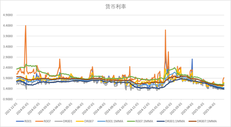 上周货币市场利率有所震荡,DR007一月均值升至1.57,月末资金面出现了小幅波动。
