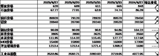 PPI影响因素方面,工业品指数上周有所下行,其中煤价、铜价、铝价及沥青价格回升,油价、水泥价格及MDI价格则有所回落。