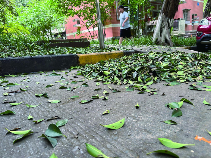 在江北区兰溪小区,这样的情形也让清洁工人叫苦不迭,他们不得不一次次地重复清扫,工作量比平常大了好几倍。这些叶子不仅清扫起来特别费力,一些居民反映树上的虫子偶尔还会掉到路人身上,有点吓人。