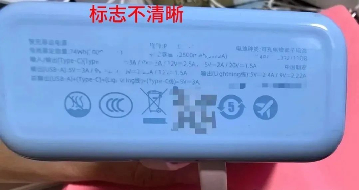 标识:旅客禁止携带没有3C标识、3C标识不清晰的充电宝乘坐境内航班。