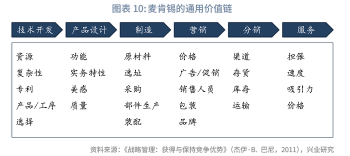 为了适用不同类型的企业,迈克尔·波特和麦肯锡公司分别提出了各自的通用价值链。