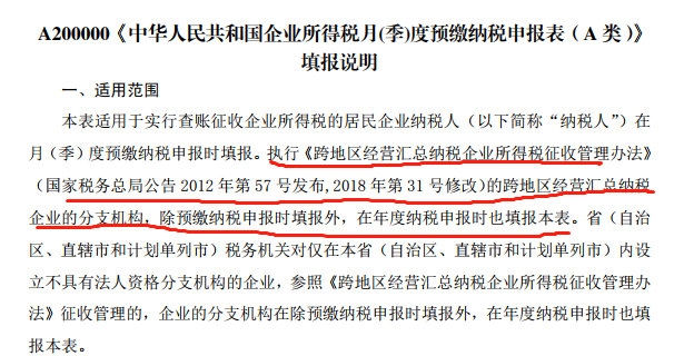 我费尽心思研究了几天,终于摸到一点点门道,总的意思就是你是跨省分公司,你的所得税要执行统一计算,简单的说就是总公司把你的财务数据统一起来,然后做汇算,算出来按给你分配,你呢也不用单独汇算,拿着分配表去分公司所在地申报缴纳即可,至于怎么分配,文件有公式,当时反正觉得挺复杂的(特别是对于我这个数学学渣),其实现在想起来主要是没实操过,看着文字想着复杂罢了。
