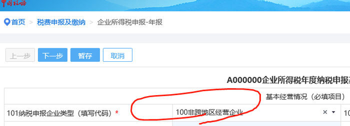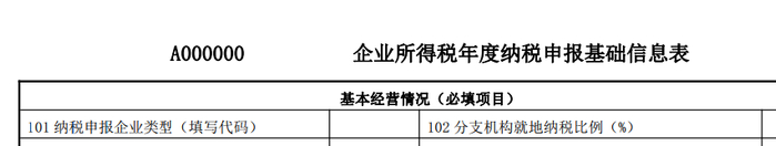 而且年度汇算清缴A类报表基础信息表101也没有你选择的地方。