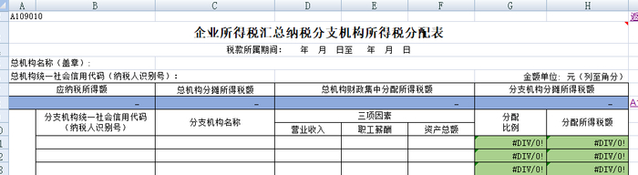 你只需要拿着总公司出具的A109010分配表,然后自己再填写预缴申报表就行了,你根本不需要填年度汇算清缴报表A类报表。