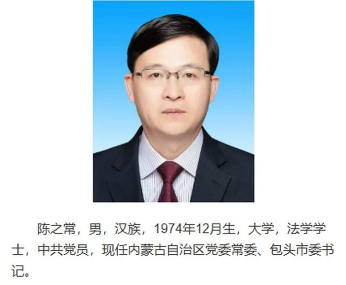【南京市市长陈之常,赴任内蒙古】内蒙古包头新闻网最新信息显示,陈之常已任内蒙古自治区党委常委、包头市委书记。