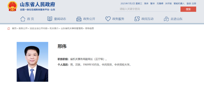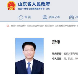 【山东省管干部邢伟,履新正厅级新职】日前,山东省人民政府网站更新显示,邢伟,现任山东省机关事务局副局长(正厅级)。