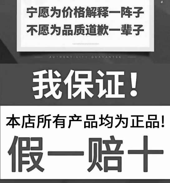 与直播平台相比,电商平台为了吸引用户,商品页面上的“假一赔十”字样更为醒目。某充电宝商家在商品图片页大幅标注“虚1赔10”,某面霜经营者在商品详情页突出承诺“本店所有产品均为正品,假一赔十”。