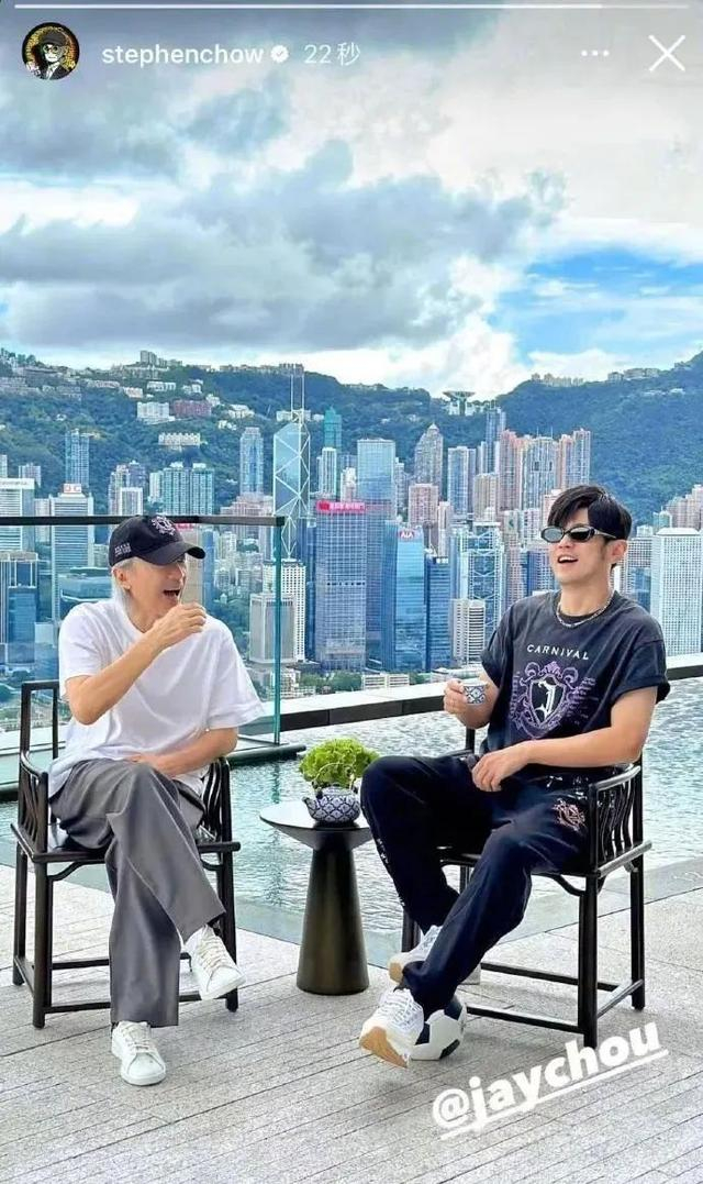 7月2日,周星驰在个人社交平台晒出了与周杰伦的合照并幽默配文: