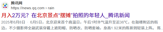 “在北京景点摆摊拍照月入两万”的新闻,看得不少网友心痒痒。