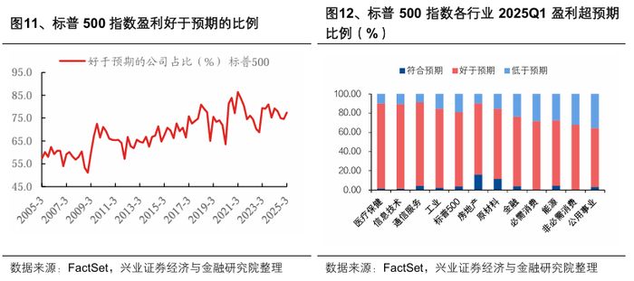 2. 标普500成分股2025Q1财报超预期比例仍较高