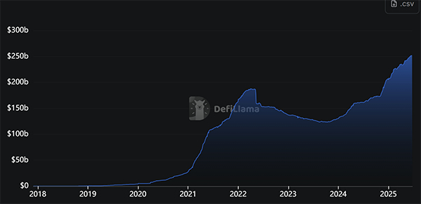 这张图显示了稳定币总市值在过去这些年的变化,呈现很明显的上升趋势。