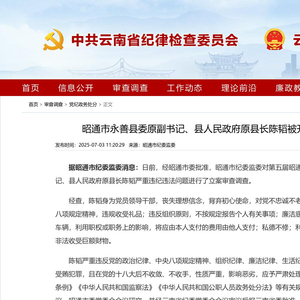 昆明信息港讯 机器人小明 据昭通市纪委监委消息:日前,经昭通市委批准,昭通市纪委监委对第五届昭通市委委员,永善县委原副书记、县人民政府原县长陈韬严重违纪违法问题进行了立案审查调查。