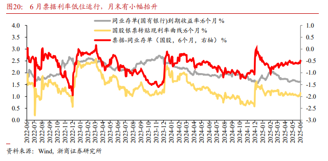 从票据利率角度观察月内信贷投放状况,6月票据-同业存单利差(6个月)仍处于低位运行,或体现信贷体量不及预期。中长期看,信贷增速逐步放缓对应的是经济结构转型升级使得信贷需求“换挡”及直接融资的良性替代,未来合理评价金融支持力度可更多关注利率下降的成效。