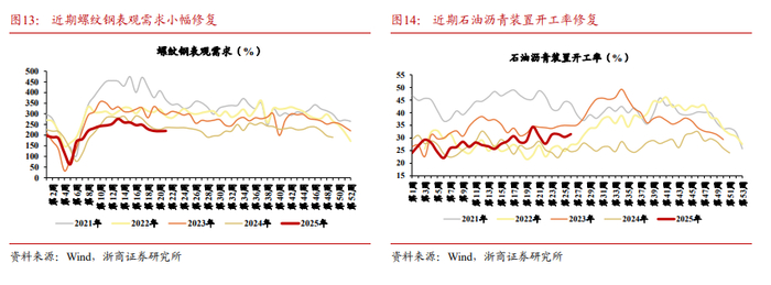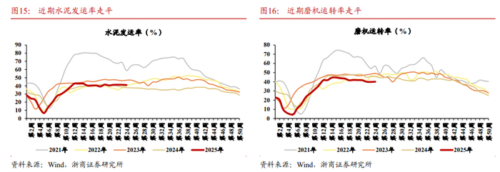 6月下旬:建筑业周度高频数据呈现,实物工作量和资金面总体有所修复。实物工作量方面,本周螺纹钢表观需求和石油沥青装置开工率小幅修复,水泥发运率和磨机运转率走平。