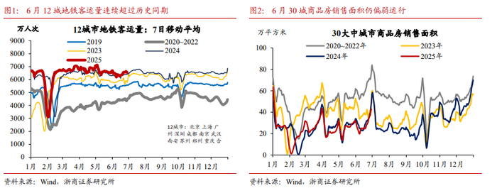 其四,房地产市场疲软延续,对地产后周期相关消费形成负向拖累。截至6月30日,30大中城市商品房销售面积6月平均值为30.9万平方米,同比下降8.6%。加之房价持续下行压制居民资产增值预期,影响地产后周期相关消费支出,预计其对社零形成一定拖累。