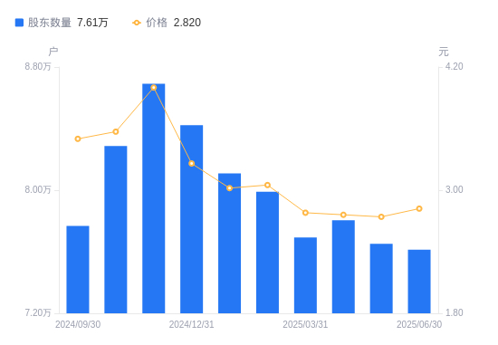 近一年(2024年6月30日至2025年6月30日),金融街A股股东户数从7.01万户,增加至7.61万户,增幅8.57%,区间股价上涨20.00%。