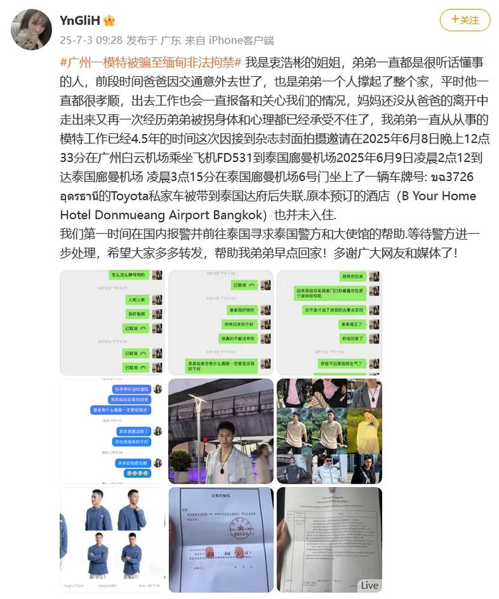 广州一模特被前老板骗至缅甸非法拘禁,亲属已报警,王星女友为其发声:熟人介绍也要警惕
