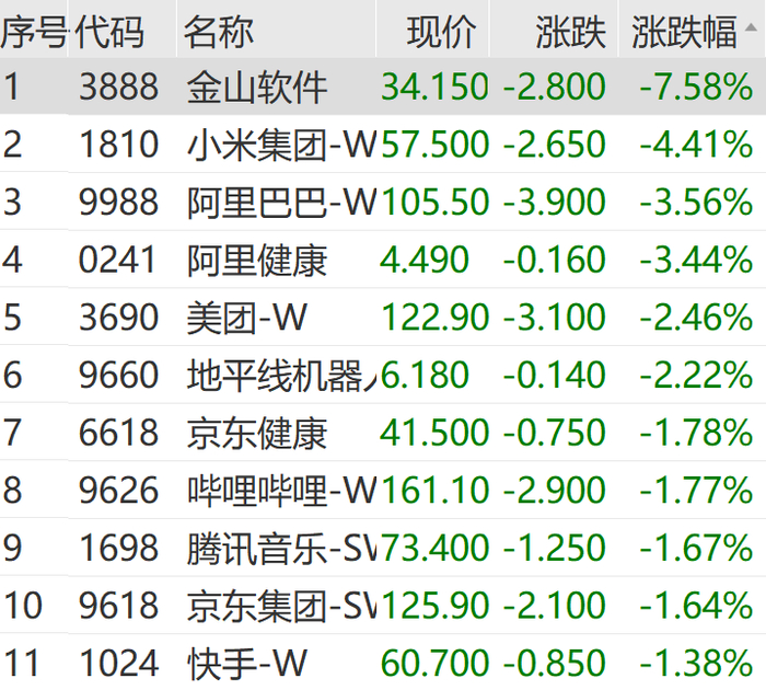港股盘初跳水,随后低位震荡。截至午间收盘,恒生指数跌0.96%,恒生科技指数跌1.2%,恒生国企指数跌1.24%。金山软件跌超7%,领跌恒生科技指数成份股。