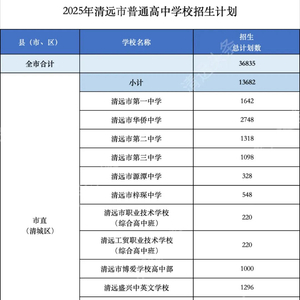 日前,记者从清远市教育局获悉,2025年秋季学期全市普通高中学校招生计划36835人,其中: