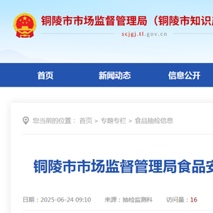 安徽省铜陵市市场监督管理局食品安全监督抽检信息通告(2025年第21期)