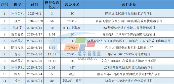 据数字新能源DataBM.com不完全统计,2025年6月份共有32个光伏项目进行了动态更新。
