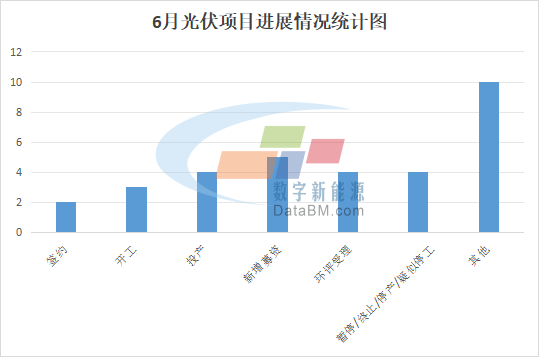 具体来看,有2个项目签约,3个项目开工,4个项目投产,5个项目新增募资,4个项目环评受理,4个项目暂停/终止/停产,其他环评公示、获批,即将开业、即将投运等进展项目有10个。