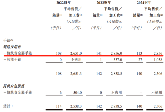 其中2023年比较特殊——疫情冲击过后需求反弹,这年公司主要的营收板块——传统贵金属手表(从公司解释来看,就是指传统足金手表)的销量同比增长30.6%,平均售价同比增长7.7%。