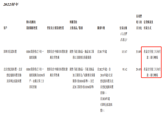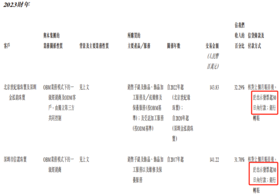 以第一和第二大客户为例,2022年的账期是“产品交付后三天内付款”。