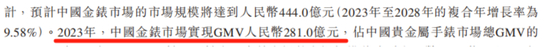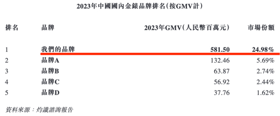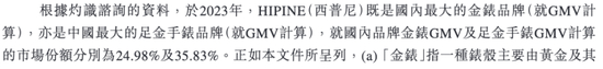 据招股书,就GMV计算,2023年,西普尼既是国内最大的金表品牌,也是国内最大的足金手表品牌,市占率分别为24.98%、35.83%,乍一看觉得很哇塞。