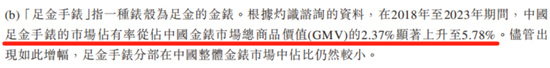 2018年至2023年,足金手表市场份额提高了3.4个百分点。
