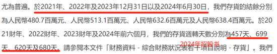 2024年,公司的存货周转天数高达708天,较2021年延长251天!