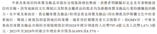 此外公司还准备进军东南亚以及中东市场,公司称在中东及东南亚,贵金属珠宝及饰品特别是黄金珠宝及饰品因在佛教及伊斯兰文化中的重要地位,传统上被视为财富与地位的象征,增长势头强劲。