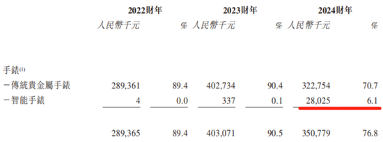 整体来看,公司传统贵金属手表的增长情况与行业背道而驰,2021-24年,公司传统足金手表的营收复合年增长率为-6.4%,根据招股书的数据测算行业是13.3%。