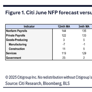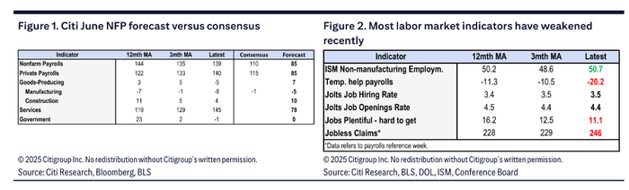 花旗银行也强调了招聘活动的显著放缓。预计夏季招聘疲软对季节性调整构成实质性阻力,因为私人部门就业通常在6月增加约80万个岗位。