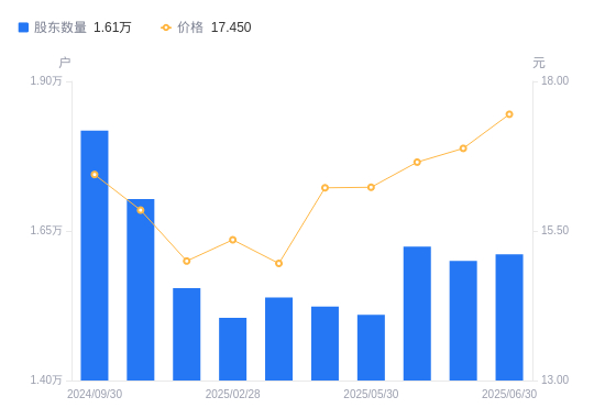 近一年(2024年6月30日至2025年6月30日),冠龙节能A股股东户数从1.75万户,减低至1.61万户,降幅8.13%,区间股价上涨21.48%。