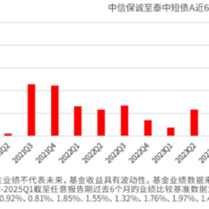 中信保诚至泰中短债A专注于中短期优质债券。回看过往定期报告,其组合久期通常控制中短期,这使得基金过往净值的波动相对较小,产品自2021年转型以来,已经连续四年(2021-2024)净值增长率为正。根据历年各季度报告显示(2021Q2-2025Q1),2021年2季度以来,截至任意报告期过去6个月份额净值增长率均为正,持有体验好。