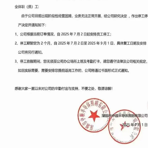 基于经营困难的现状,公司决定自2025年7月2日起安排员工停工,停工期暂定为2个月,即从2025年7月2日至2025年9月1日 ,具体复工日期及安排将另行通知。这一决策对于员工而言,意味着在停工放假期间无需到公司办公场所上班及考勤打卡,但同时也面临着收入不稳定的风险。对于公司来说,停工放假虽然可以在一定程度上减少运营成本,缓解资金压力,但也可能对公司的声誉和市场形象造成一定的负面影响,甚至可能导致部分员工的流失,影响公司未来的业务恢复和发展。