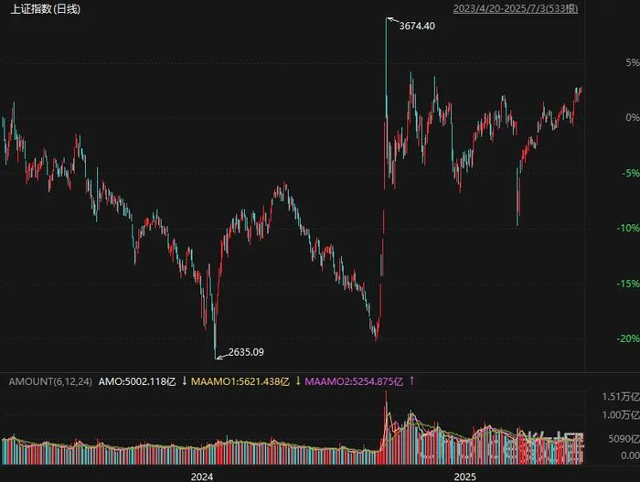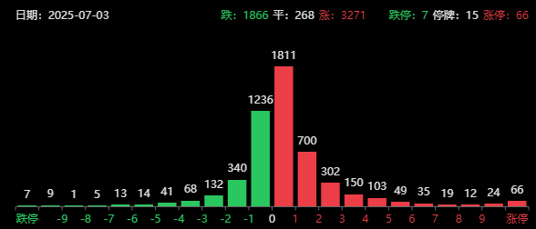 今天A股确实挺强,美国和越南的关税协议对果链是利好,但却针对了我们的转出口,有了越南这个范例,美国和泰国这些东南亚国家可能也会采用40%的转出口关税。今天港股跳水反映了市场对此的担忧,而A股却是高开高走,创业板指创下近期新高,上证指数也一度创出近期新高。悬念又出来了,这一波要不要上试3500点,后续是否放量很关键,7月份这三个交易日逐日缩量,想上攻不可能不放量。