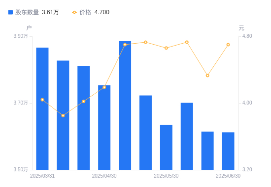 近一年(2024年6月30日至2025年6月30日),欣龙控股A股股东户数从3.66万户,减低至3.61万户,降幅1.25%,区间股价上涨60.41%。