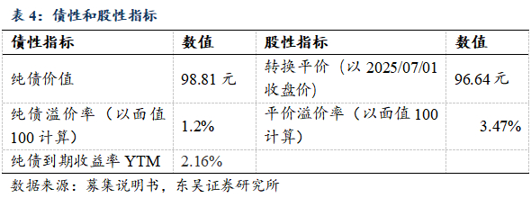 当前债底估值为98.81元,YTM为2.16%。伯25转债存续期为6年,中证鹏元资信评估股份有限公司资信评级为AA/AA,票面面值为100元,票面利率第一年至第六年分别为:0.1%、0.3%、0.6%、1.0%、1.5%、2.0%,公司到期赎回价格为票面面值的110.00%(含最后一期利息),以6年AA中债企业债到期收益率2.36%(2025-07-01)计算,纯债价值为98.81元,纯债对应的YTM为2.16%,债底保护较好。