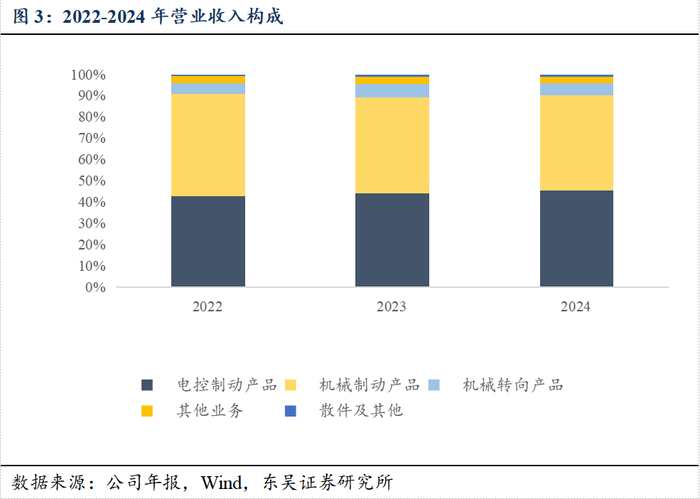 伯特利主营业务涵盖了汽车制动系统、汽车智能驾驶系统及汽车转向系统业务领域,现公司具备机械制动系统产品、机械转向系统产品和智能电控系统产品的自主正向开发能力。伯特利是一家专业从事汽车安全系统相关产品研发、制造与销售的企业,是国内具备整车制动系统开发能力的国家级高新技术企业。公司拥有各种乘用车与商用车前后盘式制动器、鼓式制动器、后综合驻车制动器(IPB)、后盘带鼓制动器(DIH)、制动主缸、真空助力器、铸铝转向节的自主开发与制造能力;公司成立伊始,一直致力于高端电子控制产品自主研发,已具备智能电子驻车系统(EPB)、汽车防抱死系统(ABS)和整车稳定控制系统(ESC)的独立开发与制造能力。