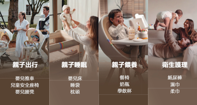 目前,BeBeBus从最初的婴儿推车、儿童安全座椅、婴儿床、餐椅四大核心产品,逐步延展到亲子出行、亲子睡眠、亲子喂养及卫生护理四大关键场景。