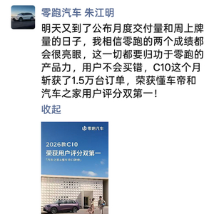 6月30日深夜,零跑汽车创始人朱江明在朋友圈表达了他的信念:“明天又到了公布月度交付量的日子,我相信零跑的两个成绩都会很亮眼——这一切都要归功于产品力,用户不会买错!”