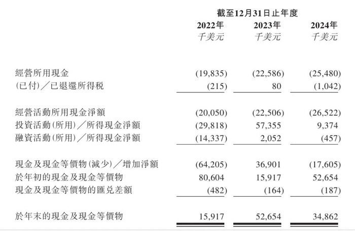 从现金流来看,截至2024年12月31日,拨康视云有现金及现金等价物34.9百万美元。招股书提示,截至2024年12月31日的现金及现金等价物将能够维持财务可行性约11个月,或倘亦计及此次募资估计所得款项净额则约为32个月。