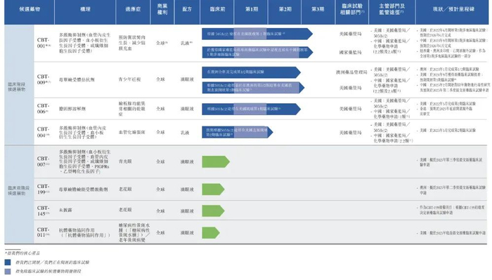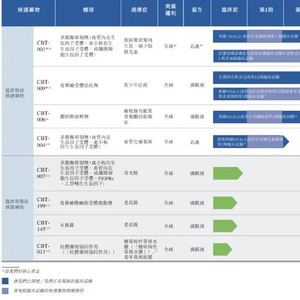 截至目前,拨康视云已建立一个由八种候选药物组成的广泛而创新的管线,覆盖眼睛前部及后部的主要疾病,其中有四款处于临床阶段的候选药物(包括2款核心产品CBT-001、CBT-009,及CBT-006、CBT-004)、四款临床前阶段候选药物。