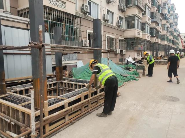 天通苑北街道白坊村是今年加装电梯工作的重点区域之一。现场,伴随着机器的轰鸣声,施工人员正在进行其中一栋楼的电梯基坑浇筑作业。与此同时,其他工人正清理着基坑周围的建筑垃圾,为下一步开展电梯井钢结构的安装和楼体的改造工程做好准备。