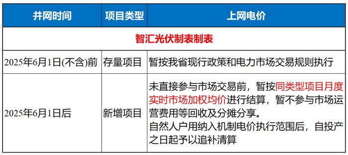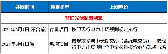 6月1日之后,存量、增量项目,均全电量参与市场交易,具体执行办法如下表。
