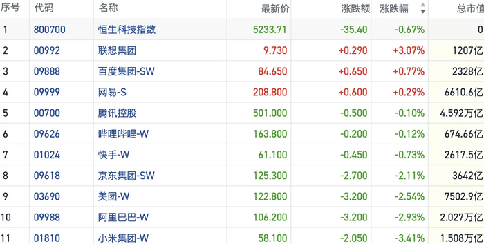 盘面上,今日大型科技股普遍走弱,小米跌3.4%,阿里巴巴跌近3%,美团跌2.5%,京东跌超2%,腾讯飘绿。